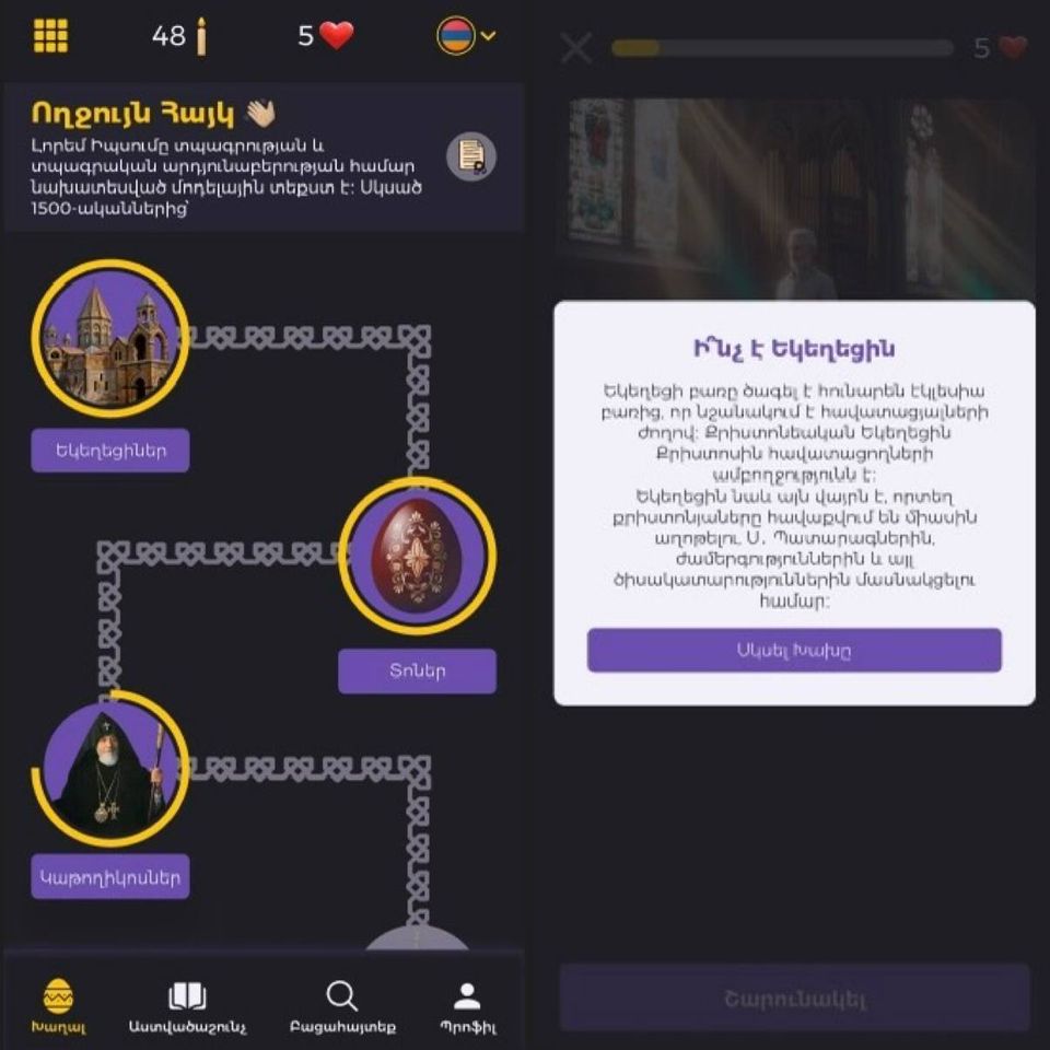 It is the first gamified platform where the Bible, prayers, St. Gregory of Narek, and Church history are presented in a playful and engaging format.