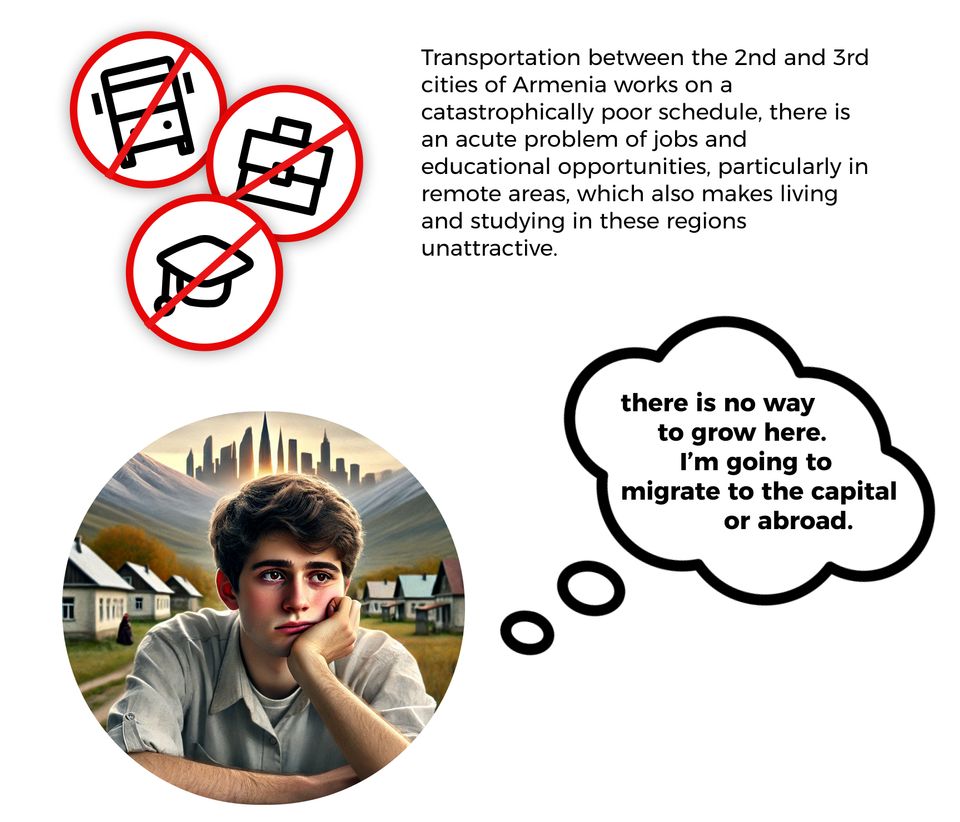 Our primary value is the idea of decentralization There's always a risk that a student coming from a village to a city might lose connection with their community. This contradicts our ideas and would turn Gyumri into another "Yerevan".