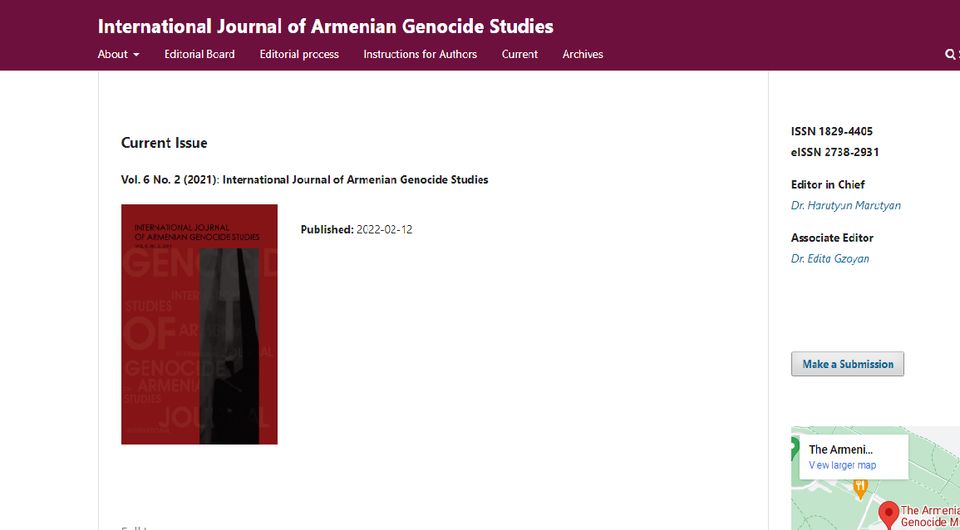 Շուտով լույս կտեսնի International Journal of Armenian Genocide Studies-ի 2022 թ. առաջին համարը: Ամսագրի այս տարվա երկրորդ համարը հատուկ համար է՝ նվիրված Արցախին: