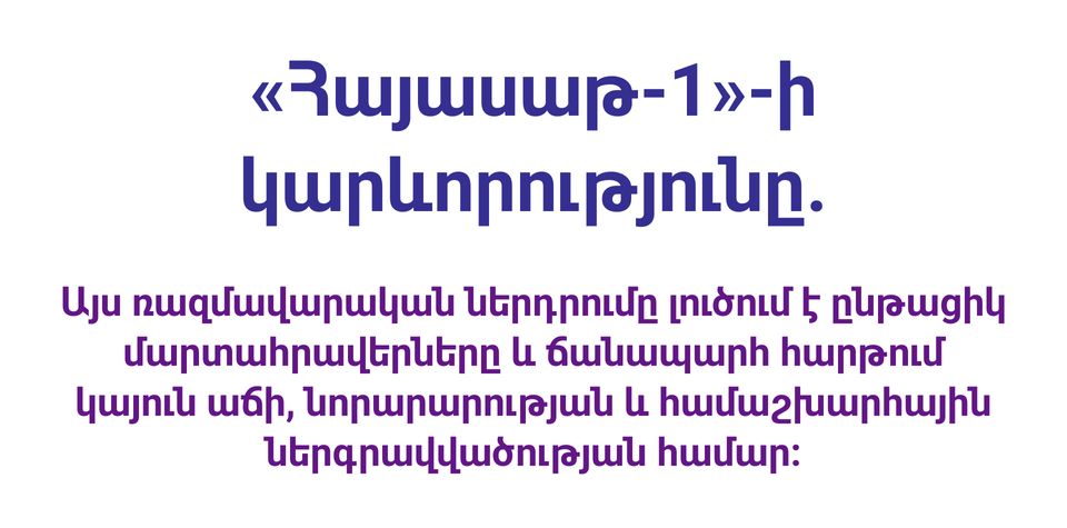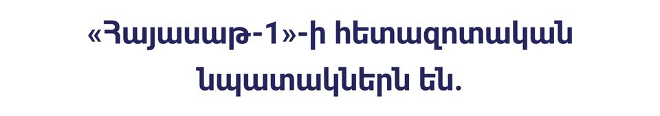 Վերականգնել Հայաստանի կրթական, գիտական, տեխնոլոգիական և արդյունաբերական ներուժը, որը կորսվել էր վերջին 35 տարիների ընթացքում։ Ուշադրության կենտրոնում է տեխնոլոգիական առաջընթացը՝ որպես Հայաստանի զարգացման և բարգավաճման բանալի, որտեղ տիեզերական տեխնոլոգիաները ծառայում են որպես գործունեության առաջատար դաշտ, հատկապես փոքր արբանյակների միջոցով, ինչպիսիք են CubeSat-երը: Նպատակն է խթանել ներքին և միջազգային համագործակցությունները, ենթակառուցվածքների ստեղծումը և ստարտափների ինկուբացիան՝ արագացնելու Հայաստանի տիեզերական գործունեությունը և առևտրայնացման հնարավորություններին: