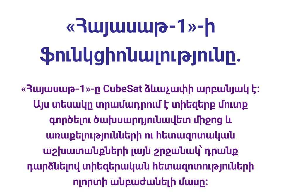 Նախագիծ 4. «Հայասաթ 1» Հայաստանի առաջին ներքին արբանյակի գործարկում