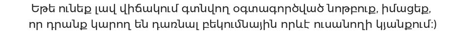 3 ամիս առաջՈւրախությամբ հայտնում ենք, որ <<Նվիրիր նոթբուք Ուսանողի տանը>> նախաձեռնությանը միացել է նաև 10Web ընկերությունը ՝ մեր ուսանողներին նվիրաբերելով մի քանի նոթբուքներ 💻