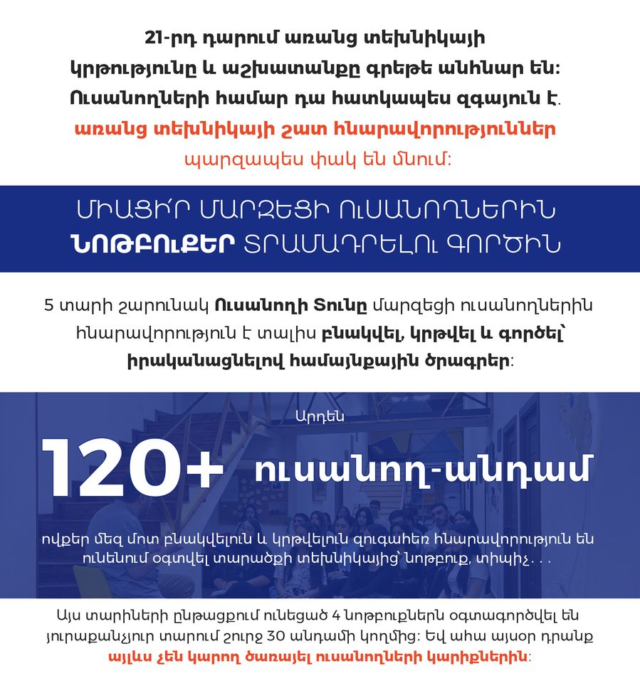Ուսանողի Տանը ստեղծում ենք կրթական միջավայր, որտեղ յուրաքանչյուր ուսանող կարող է սովորել, զարգանալ ու կառուցել իր ապագան 😊